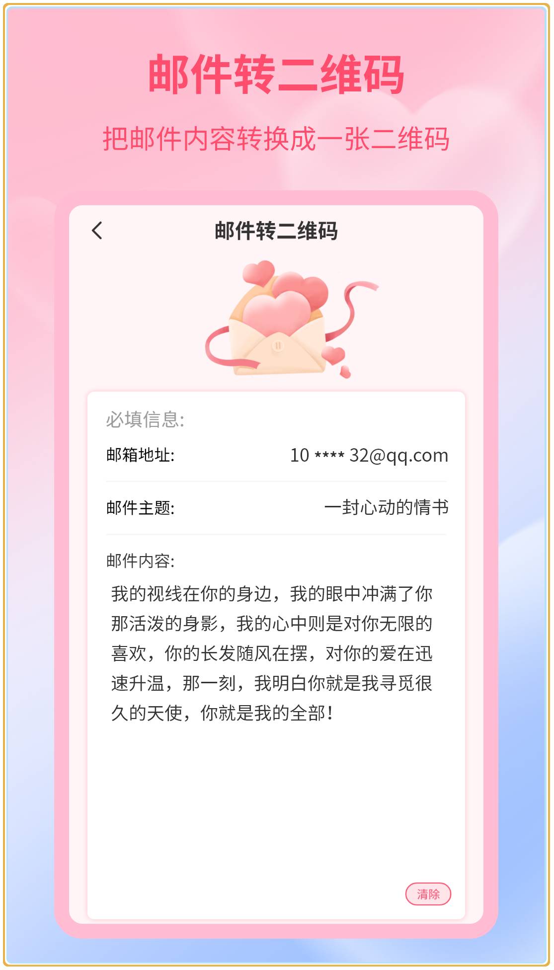 4. 支持多种分享方式,方便用户将二维码情书快速传递给心仪之人。